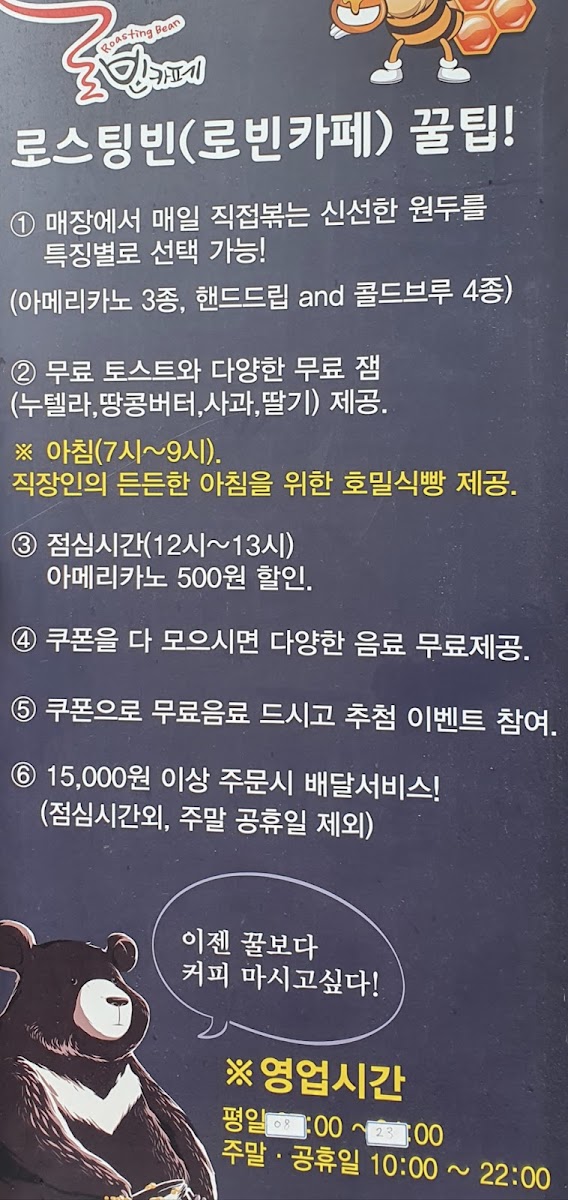 While the Americano might be stronger for some, the overall coffee quality is outstanding, complimented by the affordable prices. Additionally, Ro Bean Cafe provides complimentary snacks to enjoy while you sip your drink. Don't miss out on this remarkable spot just two minutes from Osong Station!